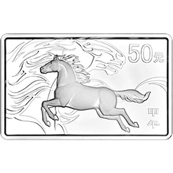 (十)5盎司长方形银质纪念币为精制币,含纯银5盎司,规格80毫米×50毫米,面额50元,成色99.9%,最大发行量20000枚。