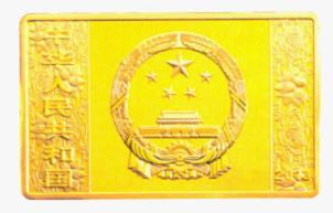(九)5盎司长方形金质纪念币为精制币,含纯金5盎司,规格64毫米×40毫米,面额2000元,成色99.9%,最大发行量2000枚。