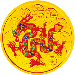 1/10盎司圆形精制金质彩色纪念币正面图案