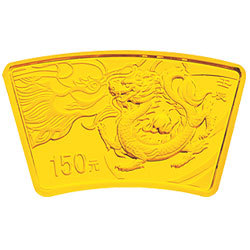 (五)1/3盎司扇形金质纪念币为精制币,含纯金1/3盎司,外圆半径51毫米,内圆半径36毫米,圆心角30度,面额150元,成色99.9%,最大发行量3万枚。