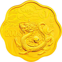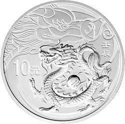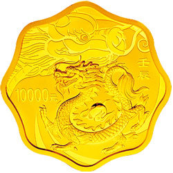 以下11枚金银纪念币背面图案均为“青龙”造型衬以装饰龙头为背景,并刊面额及“壬辰”字样。