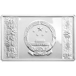 (十)5盎司长方形银质纪念币为精制币,含纯银5盎司,规格80毫米×50毫米,面额50元,最大发行量2万枚。