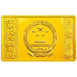 (九)5盎司长方形金质纪念币为精制币,含纯金5盎司,规格64毫米×40毫米,面额2000元,成色99.9%,最大发行量2000枚。