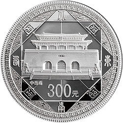 (四)1公斤圆形银质纪念币为精制币,含纯银1公斤,直径100毫米,面额300元,成色99.9%,最大发行量5000枚。