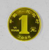 该纪念币正面刊“中国人民银行”、“1元”和汉语拼音字母“yiyuan”及“2008”年号。