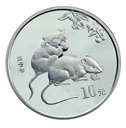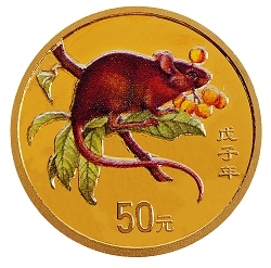 2.以下3枚金银纪念币背面图案均为吉鼠图,并刊面额: