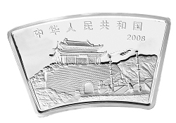 (六)1盎司扇形银质纪念币为普制币,含纯银1盎司,外圆半径85毫米,内圆半径60毫米,圆心角30度,面额10元,成色99.9%,最大发行量66000枚。