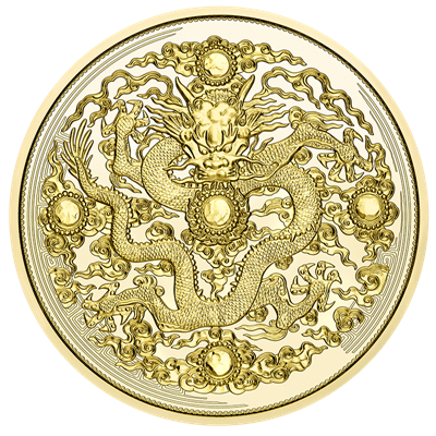 背面图案则取材自维也纳应用艺术博物馆珍藏的清·乾隆鎏金五爪御龙云章,中间的宝珠代表皇权,其他四个宝珠分别代表东西南北。其形象威严大气,充满了力量感。币上之龙的五爪也有讲究,而关于中国古代龙纹中五爪、四爪、三爪的使用规定制度主要形成于明清两代,并体现在服饰、器物和建筑装饰的等级规范中。比如明代皇帝身着的五爪龙纹袍服为其专属纹饰,没有皇帝的赏赐与允许,官员不得穿着蟒、飞鱼、斗牛等类似龙纹的袍服,《明史·志第四十三舆服三》中规定:“一品至六品穿四爪龙,以金绣为之者听。”