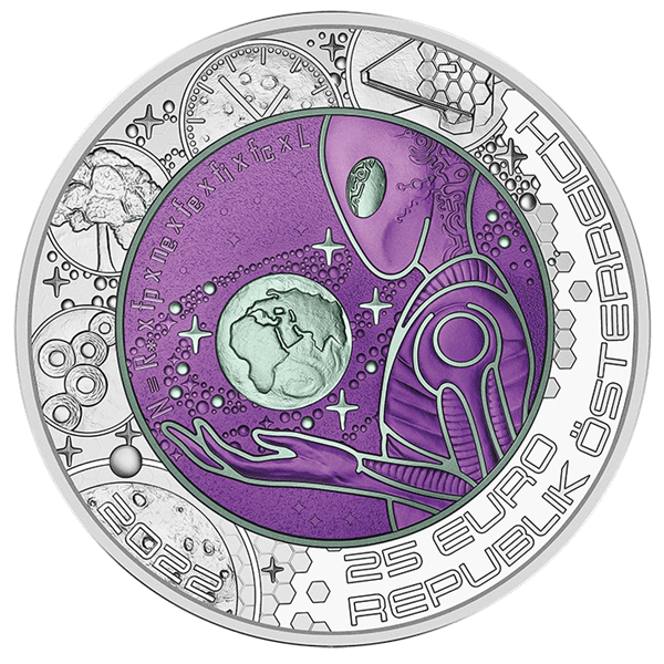 2022年3月16日,奥地利造币股份公司发行了一枚“外星生命”银铌双金属纪念币,描绘了人类对外星生命的畅想。这是奥地利造币股份公司发行的银铌币系列的第20枚纪念币。该系列自2003年推出以来,已有7枚币在世界硬币大奖中获奖,是当代贵金属纪念币中的经典产品。