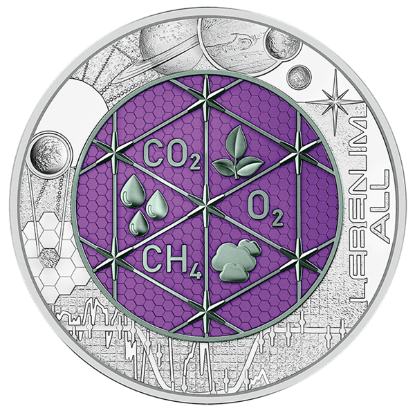 银环部分的画面为各种微观元素的组合,比如韦伯空间望远镜、钟表、树木、细胞、岩石、蜂窝结构、原子等,并刊面额、年号及国名。
