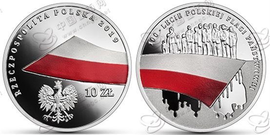 为了纪念波兰国旗100周年,波兰中央银行于2019年8月14日发行“波兰国旗100周年”纪念银币一枚。该币为波兰法定货币,由波兰造币厂铸造。