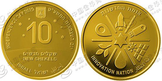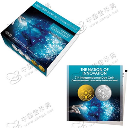 2019年是以色列建国71周年,以色列中央银行发行“以色列建国71周年”金银纪念币一套,主题为“创新的国度”,以铭记以色列建国以来凭借不断创新在各个领域取得的伟大成就。该套金银纪念币包含金币一枚,银币两枚,采用相同设计图案,均为以色列法定货币,由以色列造币厂铸造。